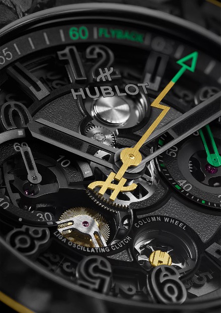 In a creative touch, the caseback of the watch incorporates “authentic soil” from Bolt’s training ground in Jamaica, encapsulated between two sapphire crystals within a lightning bolt design. The watch is powered by the HUB1280 Unico Manufacture, also known as the Unico 2, which is the successor to the caliber that has powered the Big Bang since 2010.