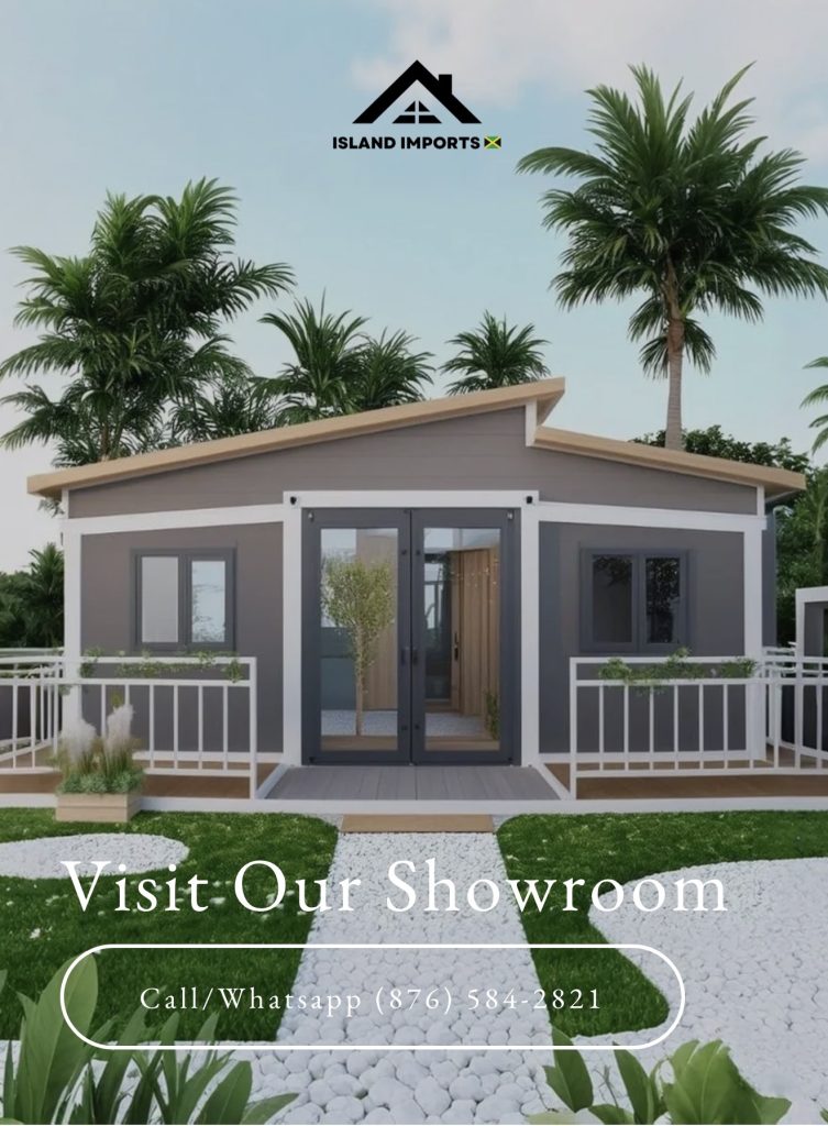 Island Imports JA specializes in modern prefab homes constructed with durable materials that withstand extreme weather conditions.