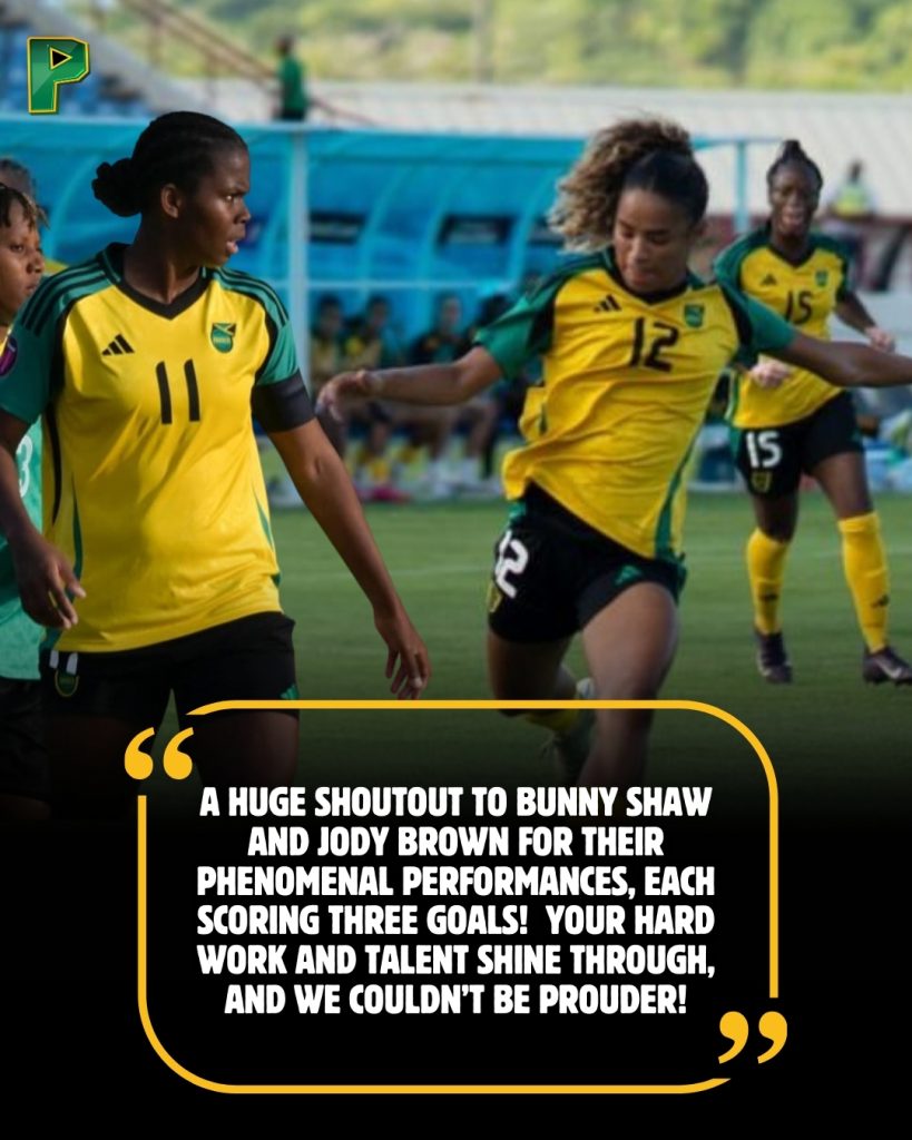 Three standout players—Khadija ‘Bunny’ Shaw, Kalyssa Van Zanten, and Jody Brown—each netted hat tricks, propelling Jamaica past the previous record of 14-0 against St. Lucia in 2014 and 13-0 against Guadeloupe four years later.