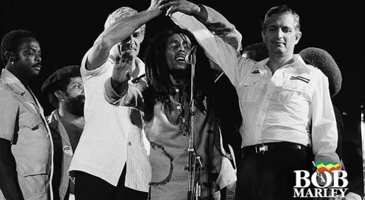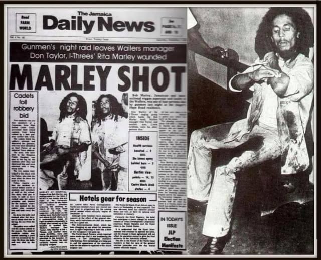 December 1976, Bob Marley and Rita Marley survived an assassination attempt at their home in Kingston Jamaica due to political tensions in Jamaica. 2days later Bob Marley and Rita Marley appeared at Smile Jamaica concert determined to play despite being wounded.