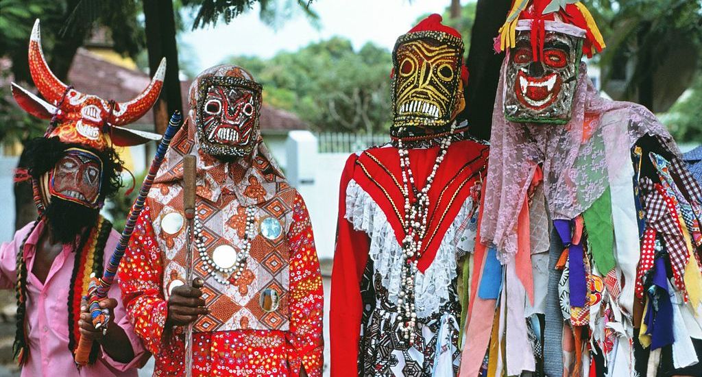 One of Jamaica’s oldest traditions is Jonkunnu, a street parade featuring costumed characters like “Cow Head,” “Pitchy Patchy,” and “Belly Woman”. This vibrant fusion of African masked dances and British folk theater once moved from house to house; while less common in big cities today, it remains a cherished spectacle in rural communities.